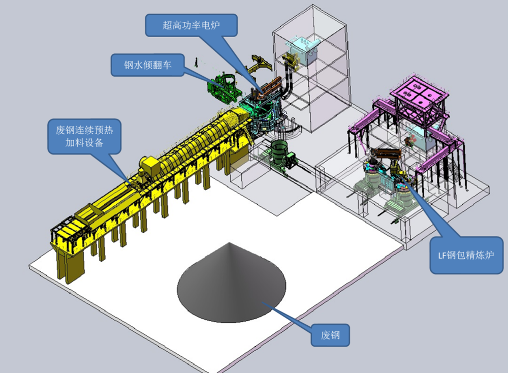 北方重工集團(tuán)有限公司在消化吸收國內(nèi)外技術(shù)基礎(chǔ)上,開發(fā)的60t至150t超高功率電弧爐、LF鋼包精煉爐及廢鋼水平連續(xù)預(yù)熱加料設(shè)備具有連續(xù)加料、連續(xù)預(yù)熱和連續(xù)冶煉的工藝特點(diǎn),實(shí)現(xiàn)了煉鋼生產(chǎn)的高效、低耗和環(huán)保,主要應(yīng)用于鋼鐵冶金、機(jī)械鑄造、新材料等領(lǐng)域。