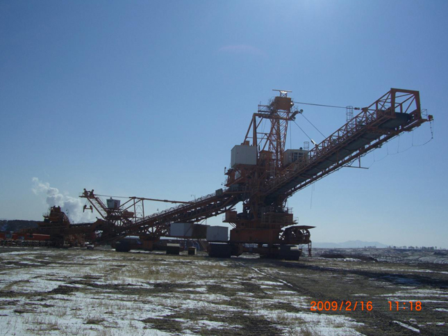 我公司早在上世紀(jì)九十年代就與曼塔克拉夫公司合作制造斗輪挖掘機(jī),現(xiàn)服務(wù)于平莊煤業(yè)元寶山露天煤礦,生產(chǎn)能力3600m3/h,從1992年投產(chǎn)直至今日,建立了良好的用戶口碑。該斗輪挖掘機(jī)為大型采礦型,線性尺寸大,可以完成組合采高40m。適用于開(kāi)采工作面高且強(qiáng)度大的作業(yè)區(qū)域,可以減少工作面帶式輸送機(jī)的數(shù)量,便于連續(xù)開(kāi)采工藝管理。